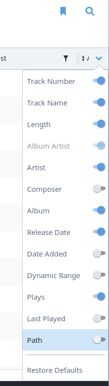 The Track Browser You can access the Track Browser by clicking the navigation icon , then Tracks. You will see the albums in your library displayed in a screen something like this: The column headings in the Track Browser are customizable. Click the ...