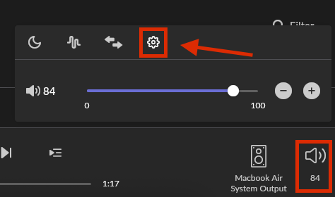 To access your volume control settings, click the volume icon > settings cogwheel > device setup