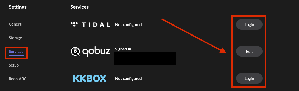 - Streaming Services: Log in to TIDAL or Qobuz under Roon Settings > Services.
