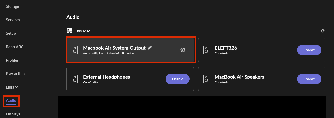 To use one, click Enable, give it a friendly name (e.g. “Living Room DAC” or “Office Mac”), and it will show up as a playback zone.