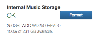 After the format is complete, the "`Internal Music Storage" section in the Web Administration Interface will change to show that it is formatted.