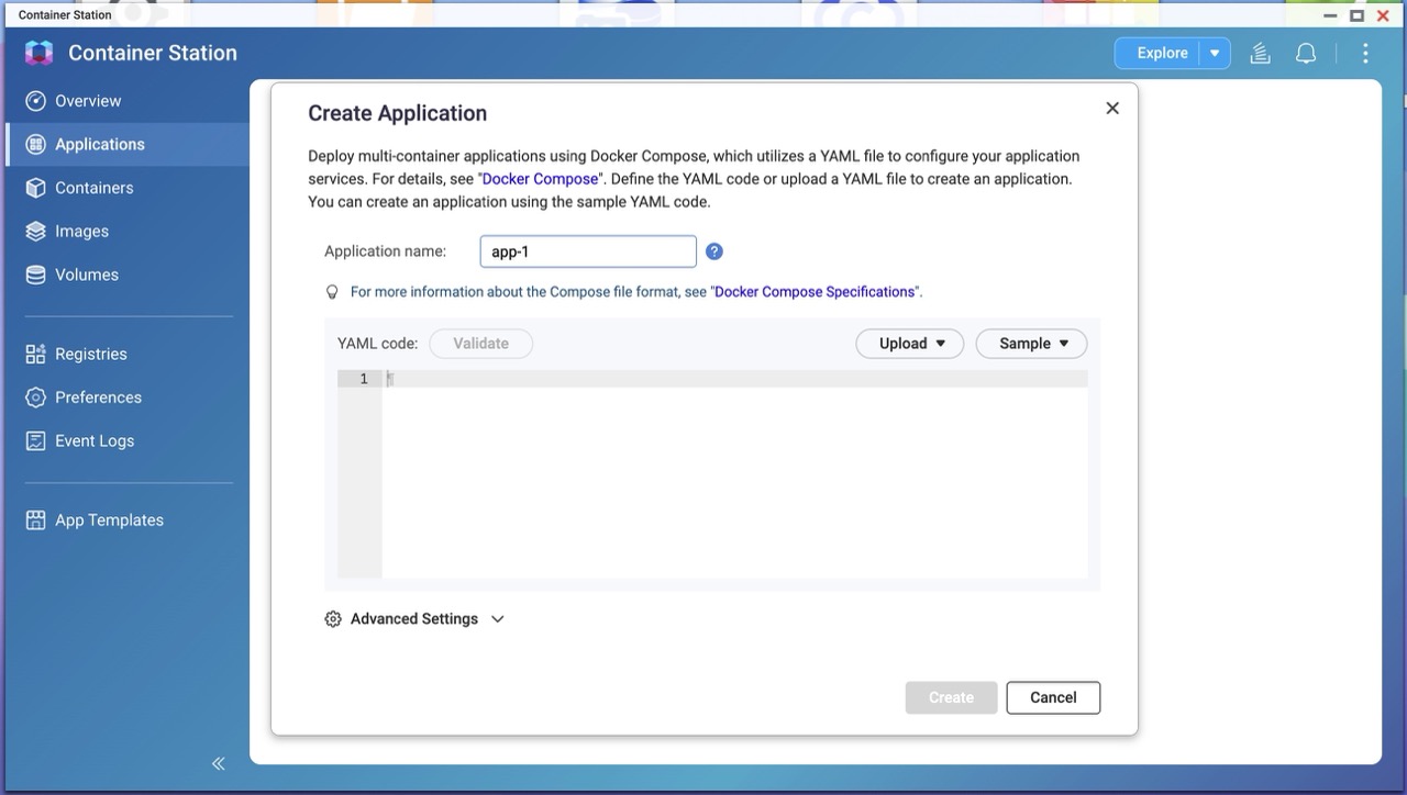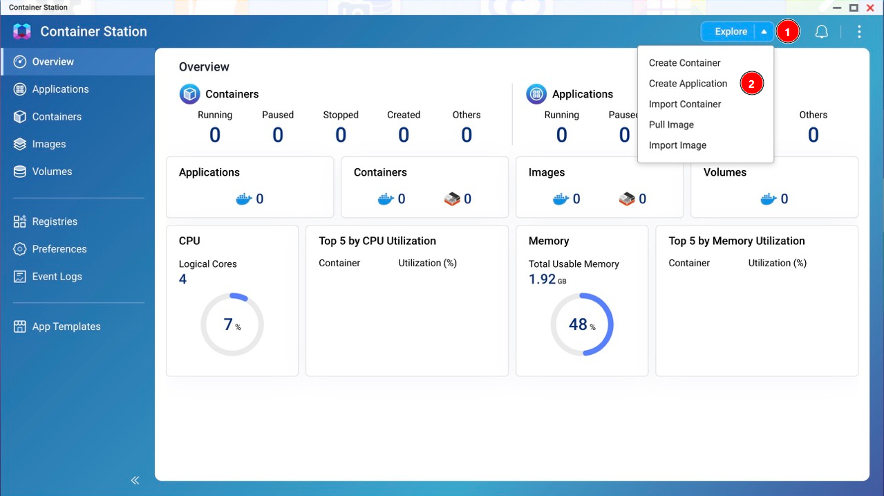 Container Station installed from App Center.