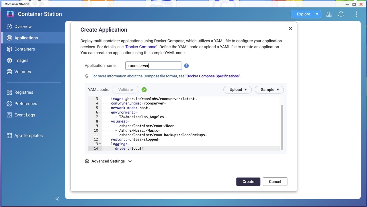 This guide explains how to run the official RoonServer Docker image on a QNAP NAS using Container Station.