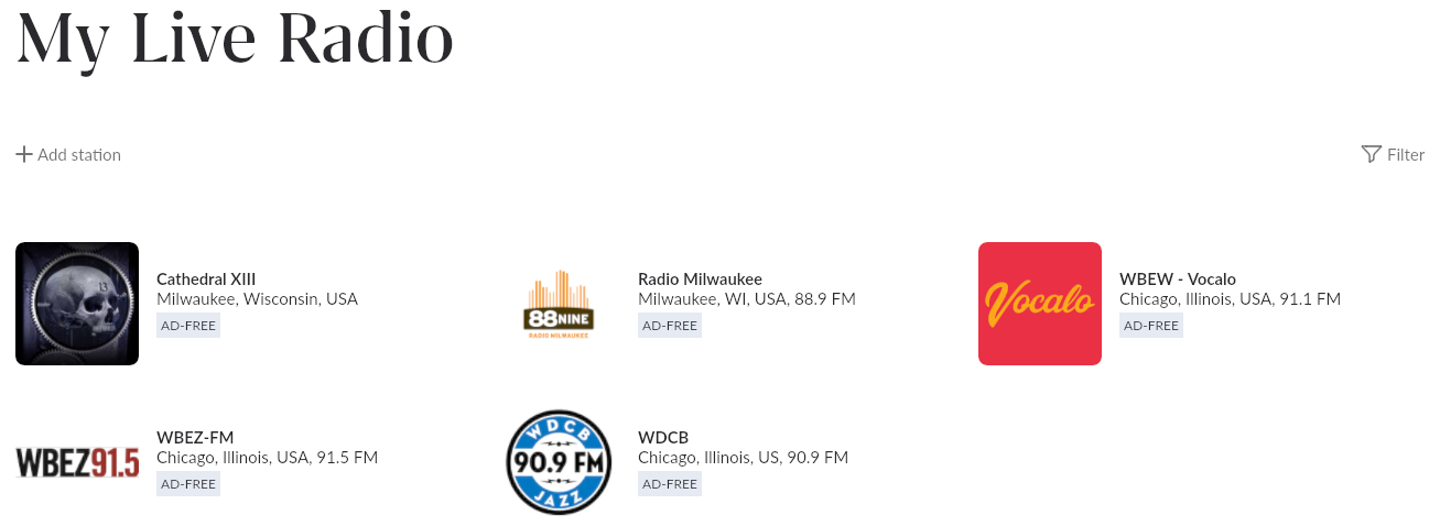 Want to enjoy your favorite radio station's online stream in Roon? Check out our Live Radio directory, a collection of more than 1000 live radio stations, hand-curated by the Roon community. You can browse stations by genre or quickly find your local stations.