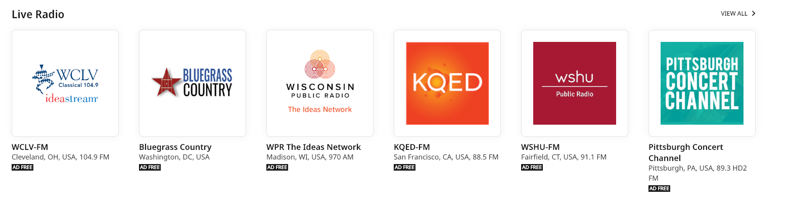 Roon will also automatically show you stations that broadcast near your physical location as you browse the directory -- if there are any "local" stations they will appear at the top of the page.