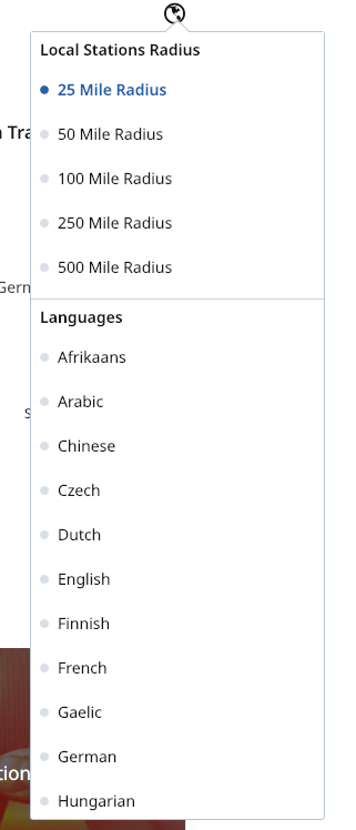 This menu will also allow you to filter all the stations on the page by language