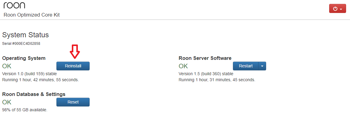 RoonOS will be reinstalled on your machine to the latest available version.